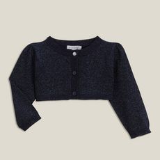 Les mamans adorent ce gilet bébé à la maille brillante ! Agréable à porter. Ouverture boutonnée avec un bouton transparent. Col rond. Manches longues ornées de petites fronces. Finition bords-côtes. Ce cardigan court bébé fille est lavable en machine à 40°.