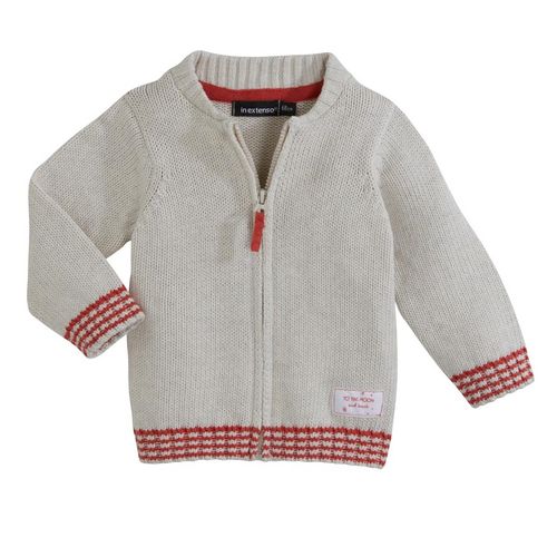 Quand les températures chutent, bébé a besoin d'un cardigan bien chaud comme celui-ci. On aime : son ouverture zippée, très pratique. Il est réalisé en tricot. Le cardigan bébé possède un col rond et des manches longues. On note le badge cousu en bas sur le devant et les finitions chinées bords-côtes.
