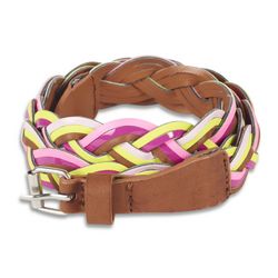 Cette ceinture tressée égayera les tenues des filles ! Bandes fluos. Boucle en métal. Existe en 3 tailles.