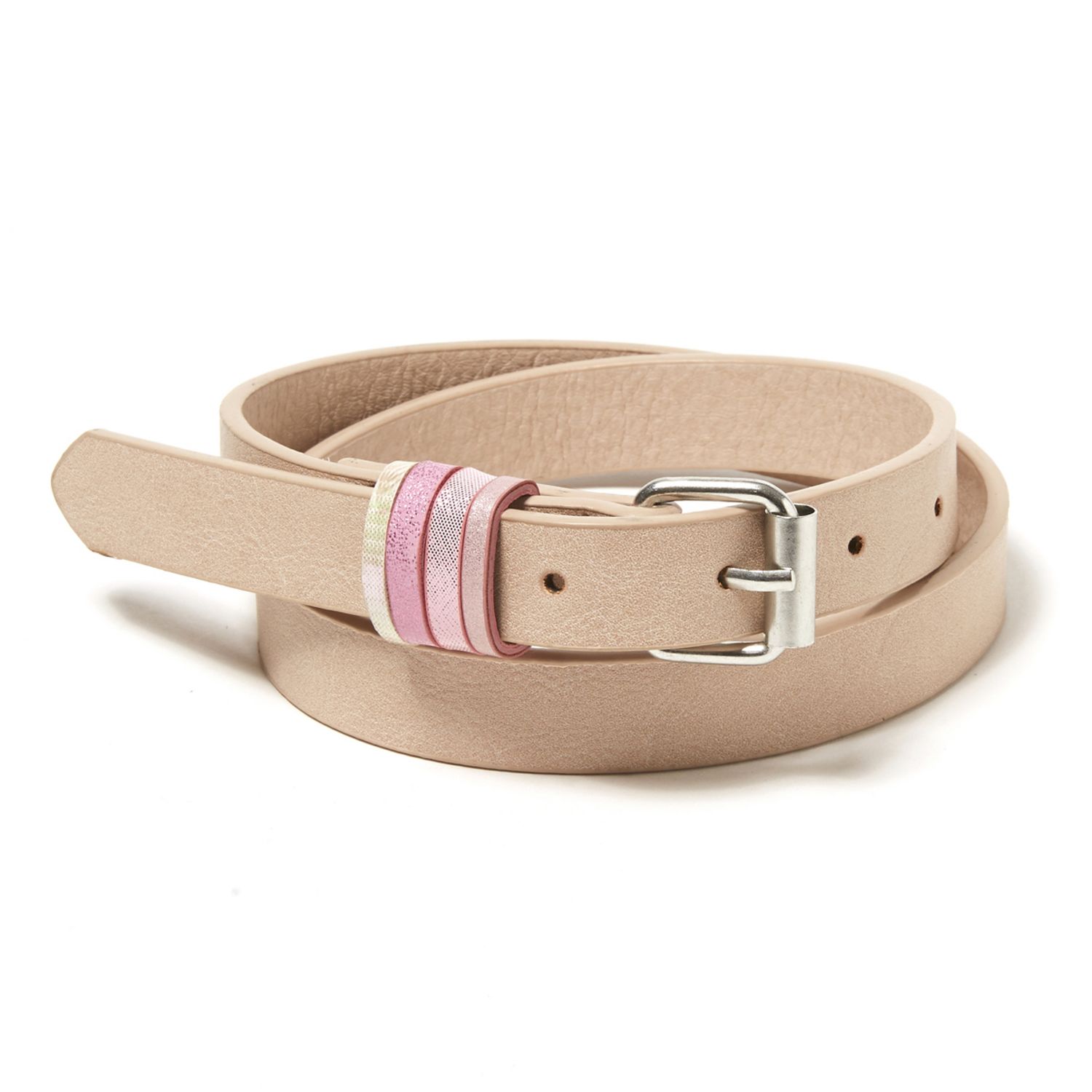 Indispensable pour finir un look : la ceinture fine fille. Le plus : passants irisés et colorés. Boucle en métal.