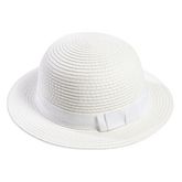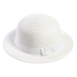 Allure chic pour bébé avec ce chapeau de paille blanc ! Nœud fantaisie sur le côté. Bande de propreté intérieure pour le confort. Ce chapeau bébé fille existe en 3 tailles.