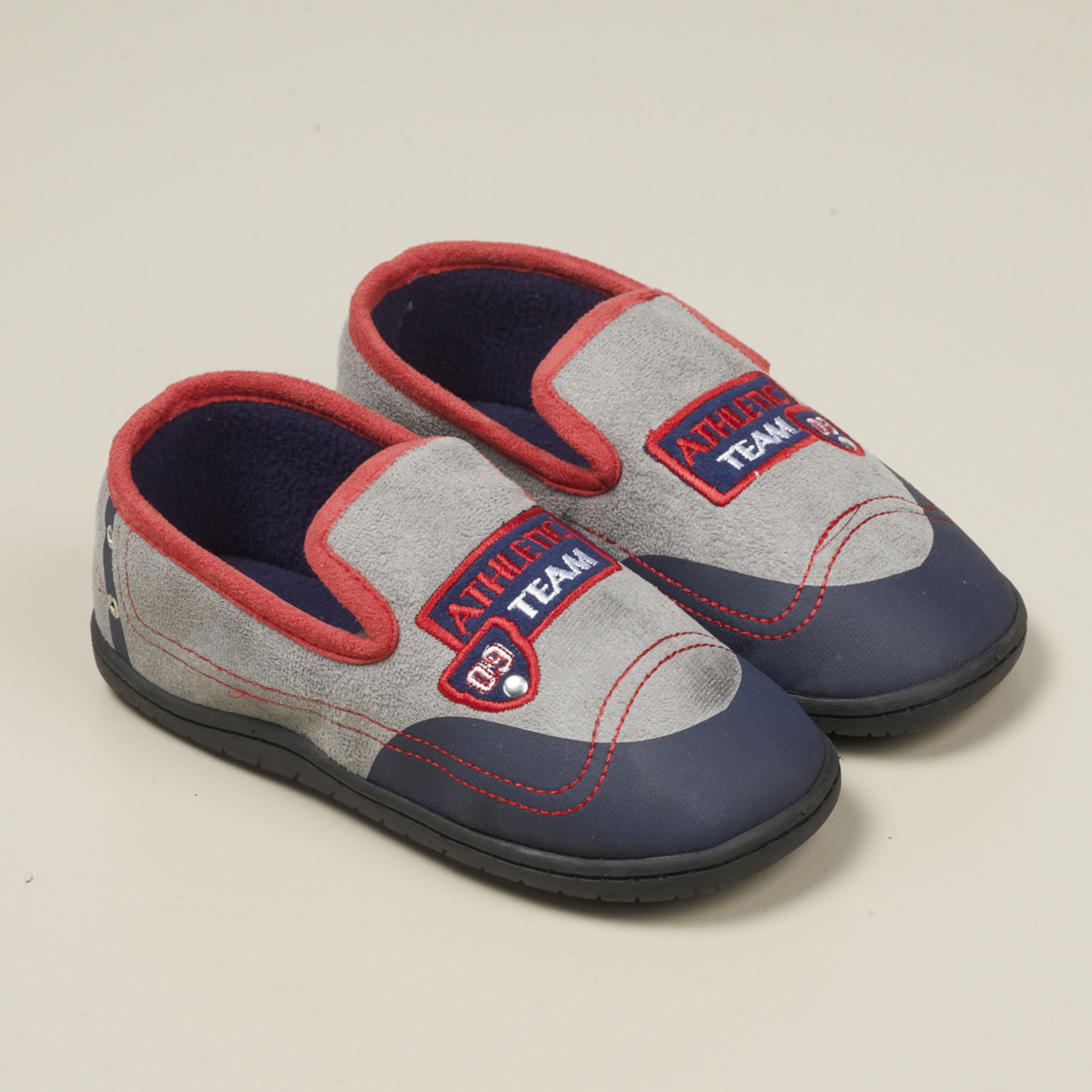 Ces chaussons garçon sont résistants, confortables et doux. Dessus textile très doux. Animation par broderie, jeu de surpiqûres contrastantes, et œillets sur l'arrière. Intérieur entièrement doublé pour une douceur réconfortante. Semelles en élastomère antidérapantes.