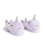 Ces chaussons licorne-baleine sont un rêve de douceur : confectionnés en maille peluche moelleuse et chaude, ces chaussons sont rehaussés d’une queue irisée avec une corne assortie en relief, et affichent un adorable visage brodé sur le devant. La semelle extérieure est souple et équipée de gr