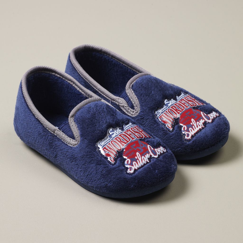 Priorité au confort avec ces chaussons garçon ! Pratique : élastiques de chaque côté, pour les enfiler facilement. Dessus en textile, doux comme une peluche et bien souple pour faciliter les mouvements. Motif placé sur le pied, bord contrastant. Intérieur en textile, pour le confort. Semelles é