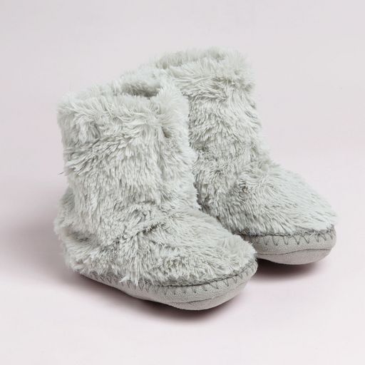 Les filles veulent toutes ces chaussons en forme de boots ! Dessus et intérieur imitation fourrure, toucher peluche. Nœud fantaisie et badge au dos. Semelles souples en textile.