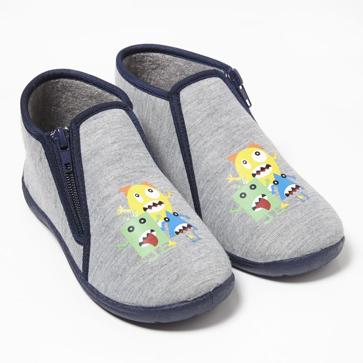 Ces chaussons garçon sont indispensables pour rester tranquillement à la maison. Agréables à porter. Dessus et intérieur textile. Imprimé fantaisie. Ouverture pratique avec zip latéral. Semelle élastomère antidérapante pour ces chaussons garçon.