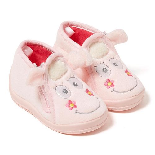 Adorables et confortables, ces chaussons mouton bébé fille ont tout pour plaire ! Ouverture pratique zippée sur le côté. Dessus textile animé de broderies et animation en relief. Intérieur doux et chaud. Semelle élastomère antidérapante pour ces chaussons bébé fille.