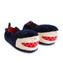 Des chaussons requin carrément déments que les garçons vont adorer porter à la maison ! Confectionnés en maille peluche moelleuse et chaude, ces chaussons comportent une queue avec des petites nageoires en relief, et affichent un visage de requin brodé sur le devant. La semelle extérieure est souple
