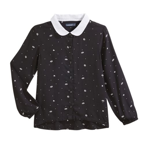 Cette chemise apporte de l'élégance dans le dressing des filles ! Matière fluide et légère. Imprimé fantaisie. Col Claudine contrasté. Ouverture boutonnée. Manches longues, avec poignets resserrés. Plis en haut du dos. Base plus longue à l'arrière. Cette chemise imprimée fille est lavable en mac