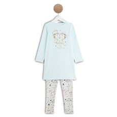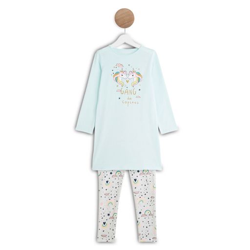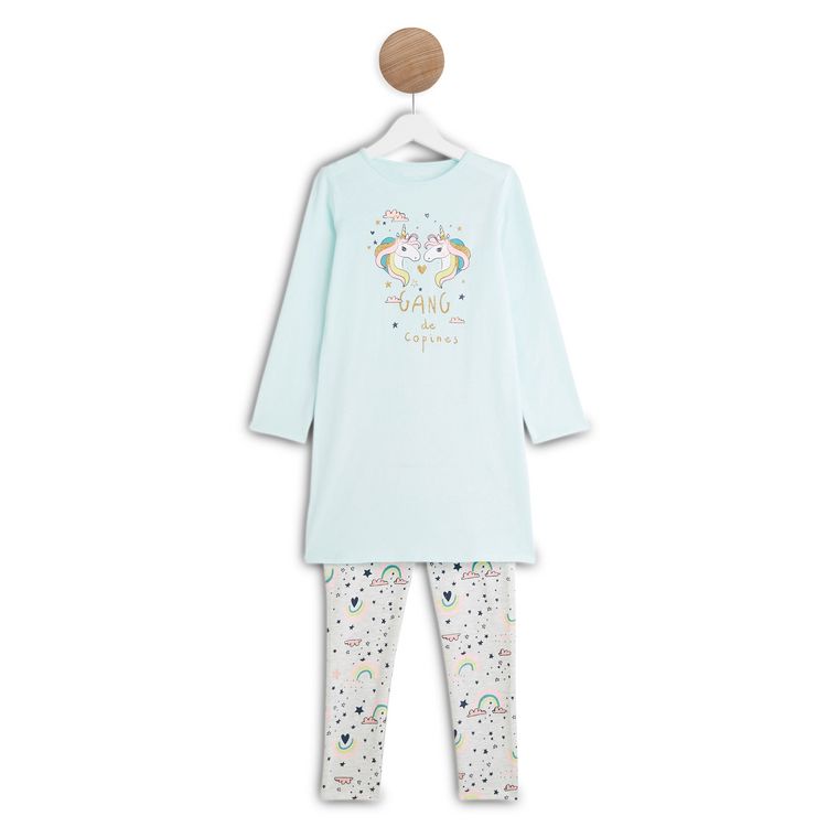 En savoir +Ce pyjama est vraiment super mignon pour dormir avec ses motifs licornes et gang de copines imprimés sur le devant ! Cette chemise de nuit est accompagnée d'un joli legging doux et confortable à porter.