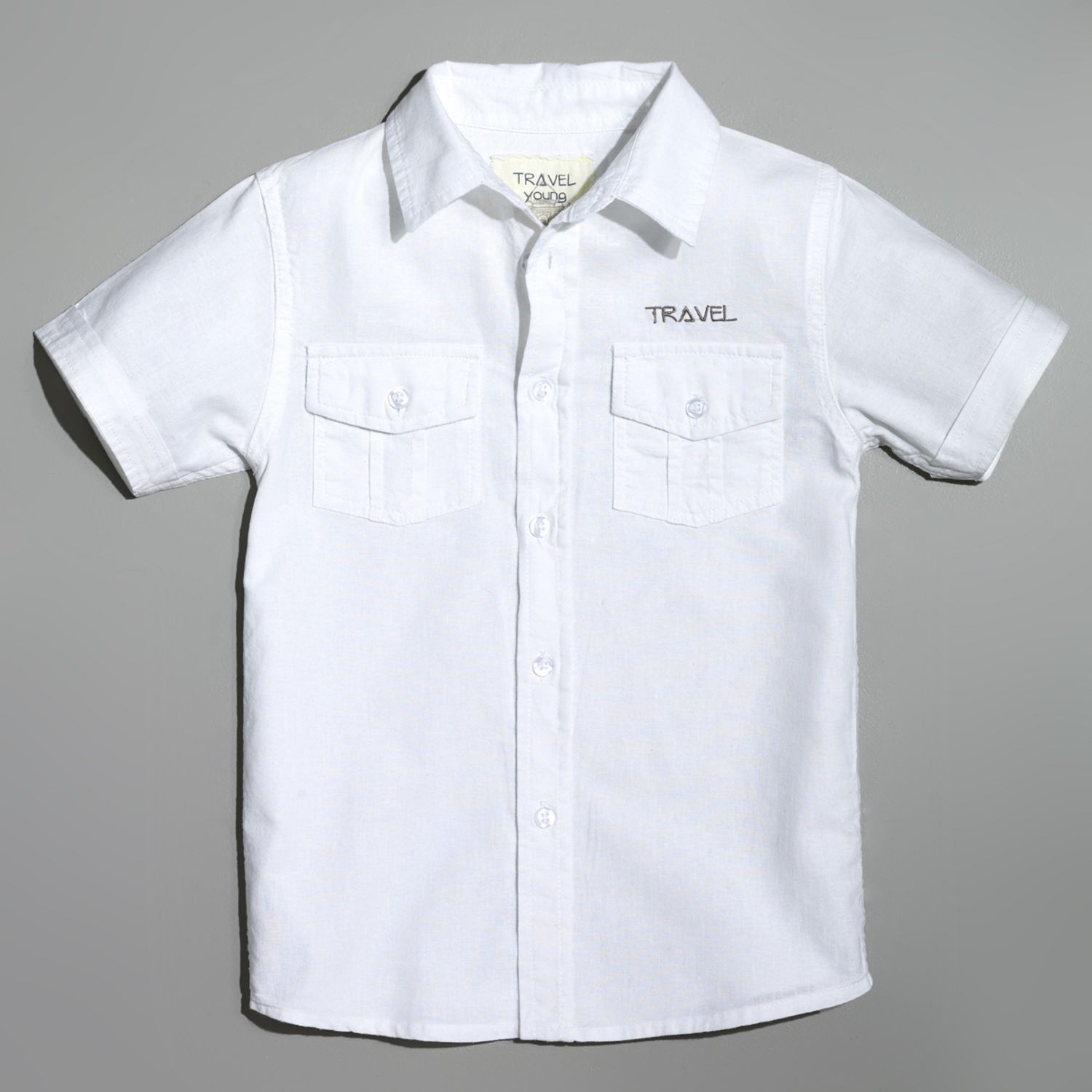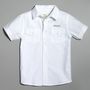 Cette chemise offrira un petit air élégant à votre garçon. Réalisée en coton lin, ultra-confortable. Ouverture boutonnée, manches courtes. Deux poches boutonnées et inscription brodée sur la poitrine. Empiècement cousu en bas de manche façon revers. Cette chemise blanche garçon est lavable en m