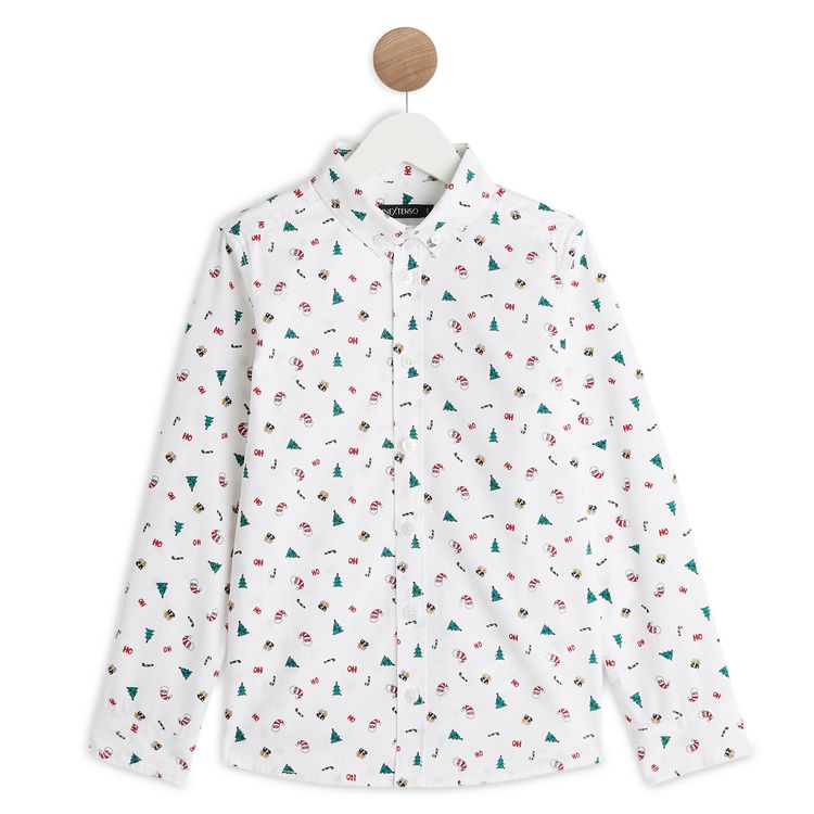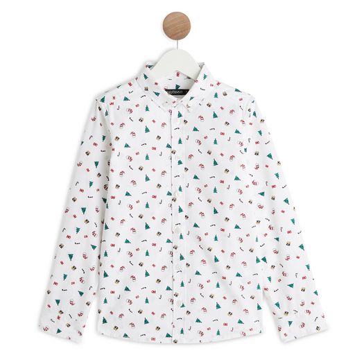 Indispensable du dressing de nos petits gars pour Noël, la chemise imprimée Père Noël et sapins sera parfaite pour les fêtes ! Portée seule fermée ou ouverte sur un t-shirt, elle donne un look chic et décontractée à la fois, surtout avec son col à pointes boutonnées !