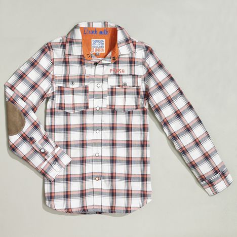 Cette chemise garçon mise sur le carreaux et plaira par son esprit country ! Pratique : ouverture pressionnée. Bande contrastante imprimée à l'intérieur du col. 2 poches plaquées poitrine à rabat pressionné, coudières aspect suédine ultra tendance, bas de manche pressionnés. Broderie sur la poi