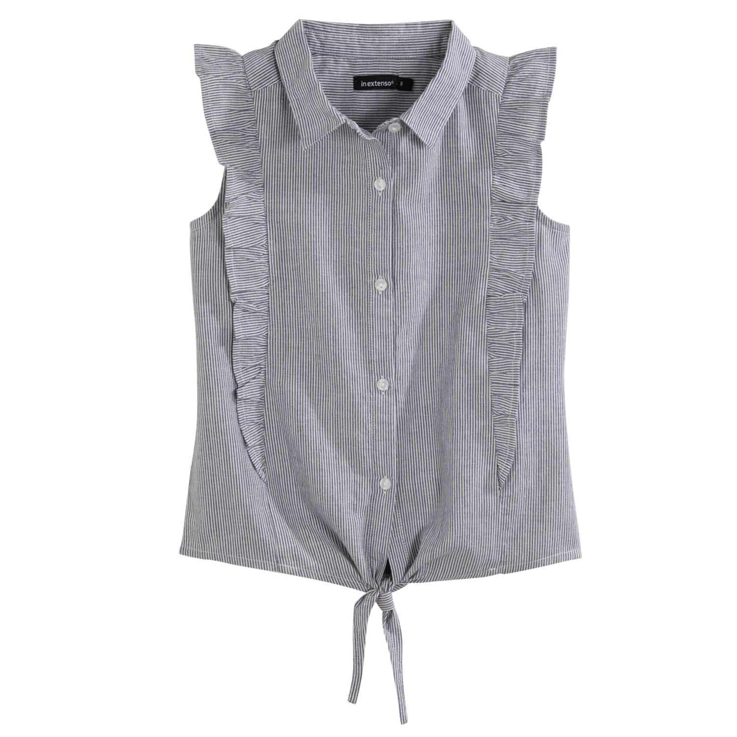 En savoir +Cette chemise à fines rayures donne un look hyper tendance aux filles : elles adorent. Elle est légère et agréable à porter. On aime : les touches brillantes, les volants fantaisie sur le devant et au dos et le nœud à la base. Ouverture boutonnée. Cette chemise sans manches fille est facile d'entretien.