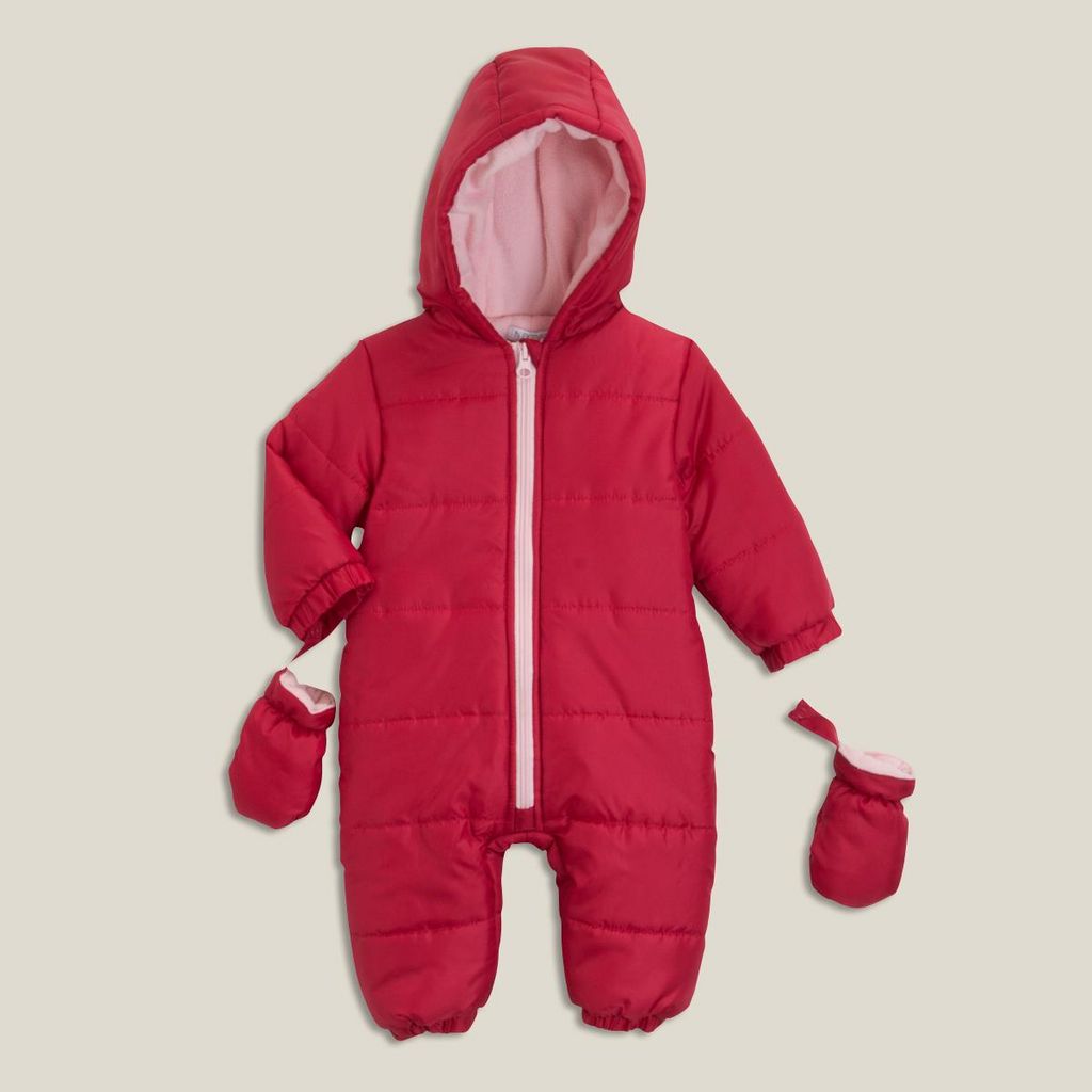 Vêtement indispensable pour la saison froide : la combinaison pilote bébé fille. Entièrement ouatinée. Corps et capuche doublés en polaire pour le confort et la chaleur. Ouverture zippée pour déposer bébé facilement. Poignets et bas de jambe légèrement élastiqués. Jeu de surpiqûres. Moufles doublées