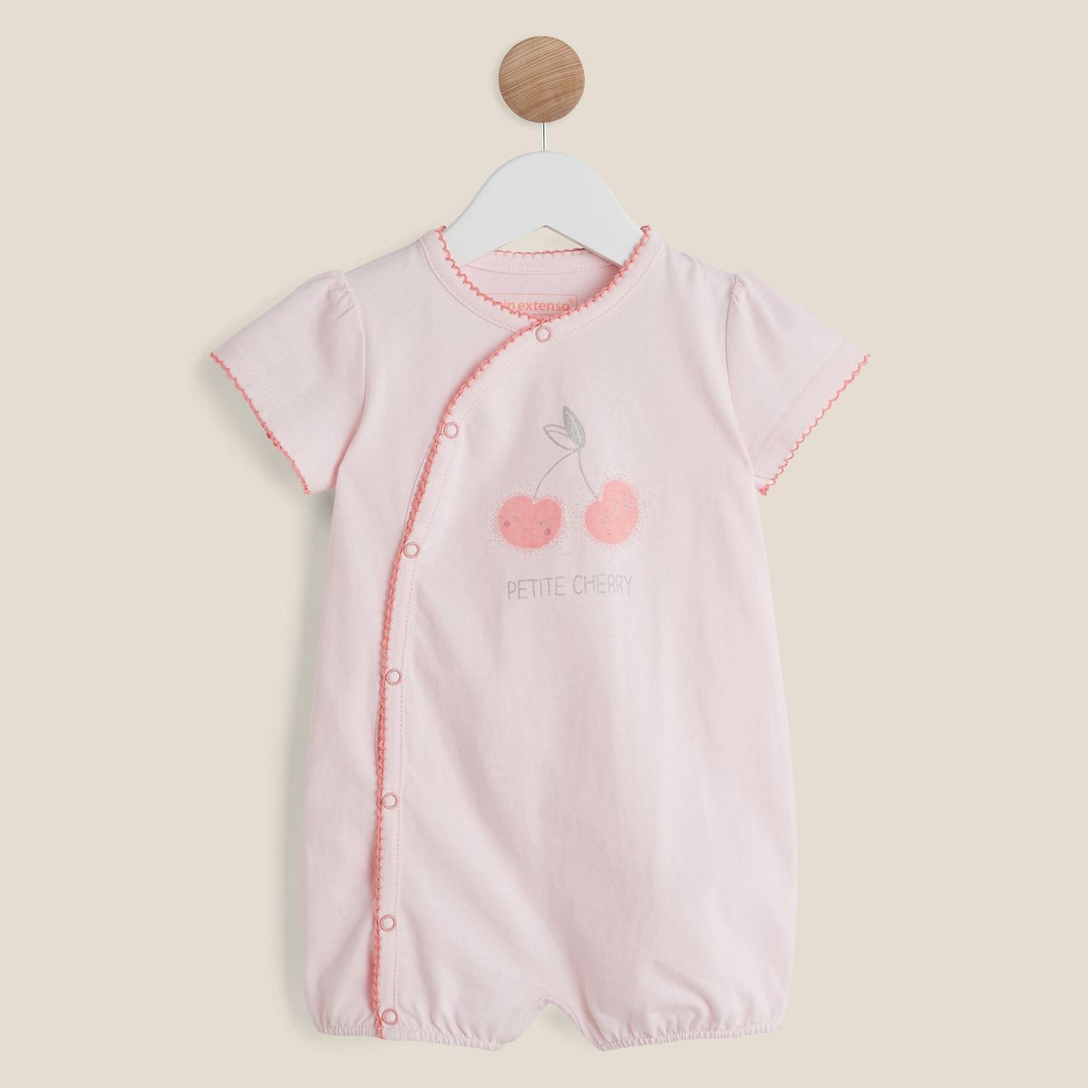 Bébé est à croquer dans ce tendre combicourt rose pâle, avec un joli motif cerises légèrement pailleté sur le devant. Ce combicourt possède des bas de jambes élastiqués pour le confort, une ouverture croisée et entièrement pressionnée pour une ouverture facile, et une jolie finition croquet contrast