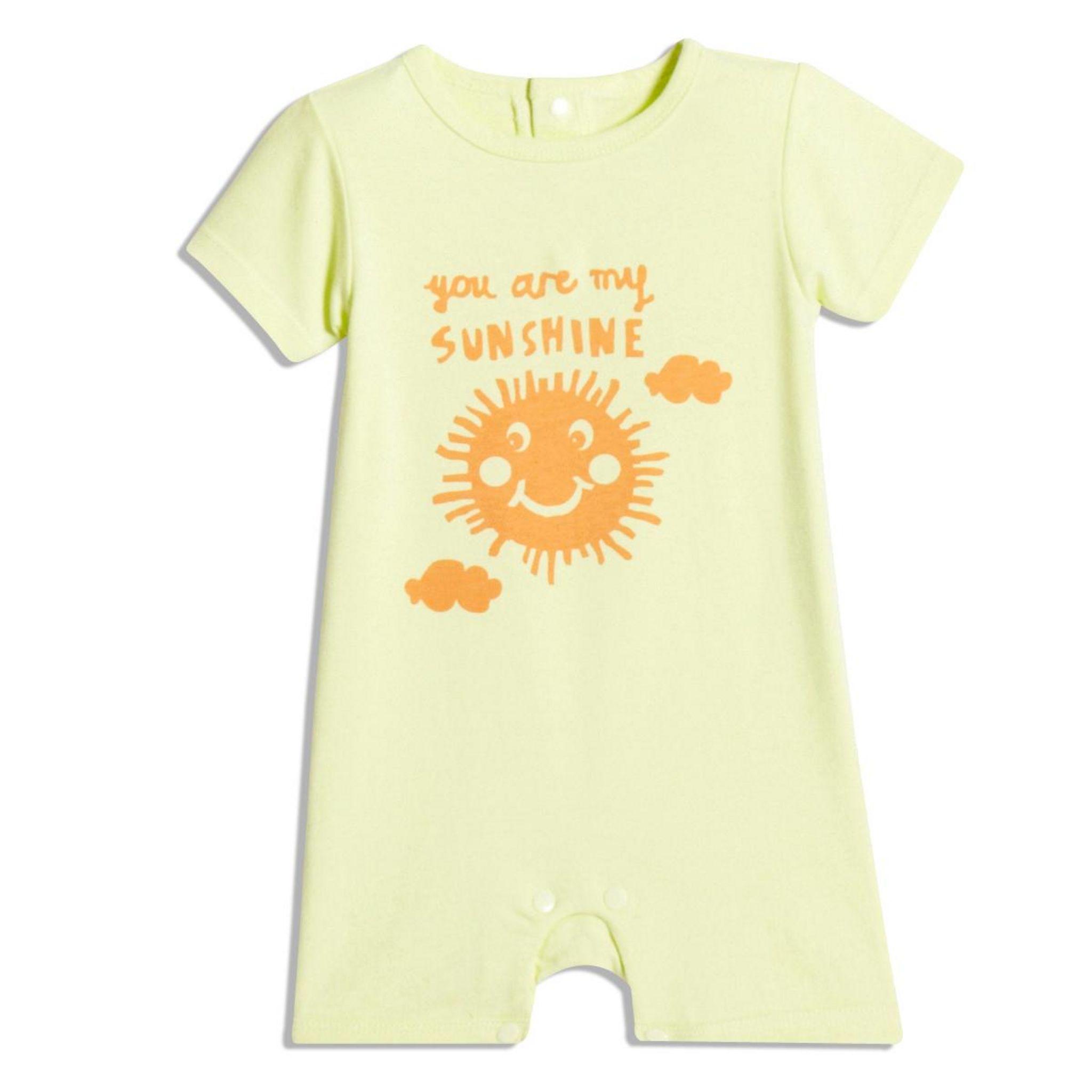Ce combishort confortable ensoleille le dressing de bébé ! 100% coton. Toucher doux. Pressions à mi-dos et à l'entrejambe pour habiller bébé facilement. Imprimé sur le devant. Col rond. Manches courtes. Ce combicourt bébé mixte est lavable en machine à 30°.