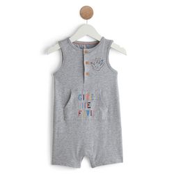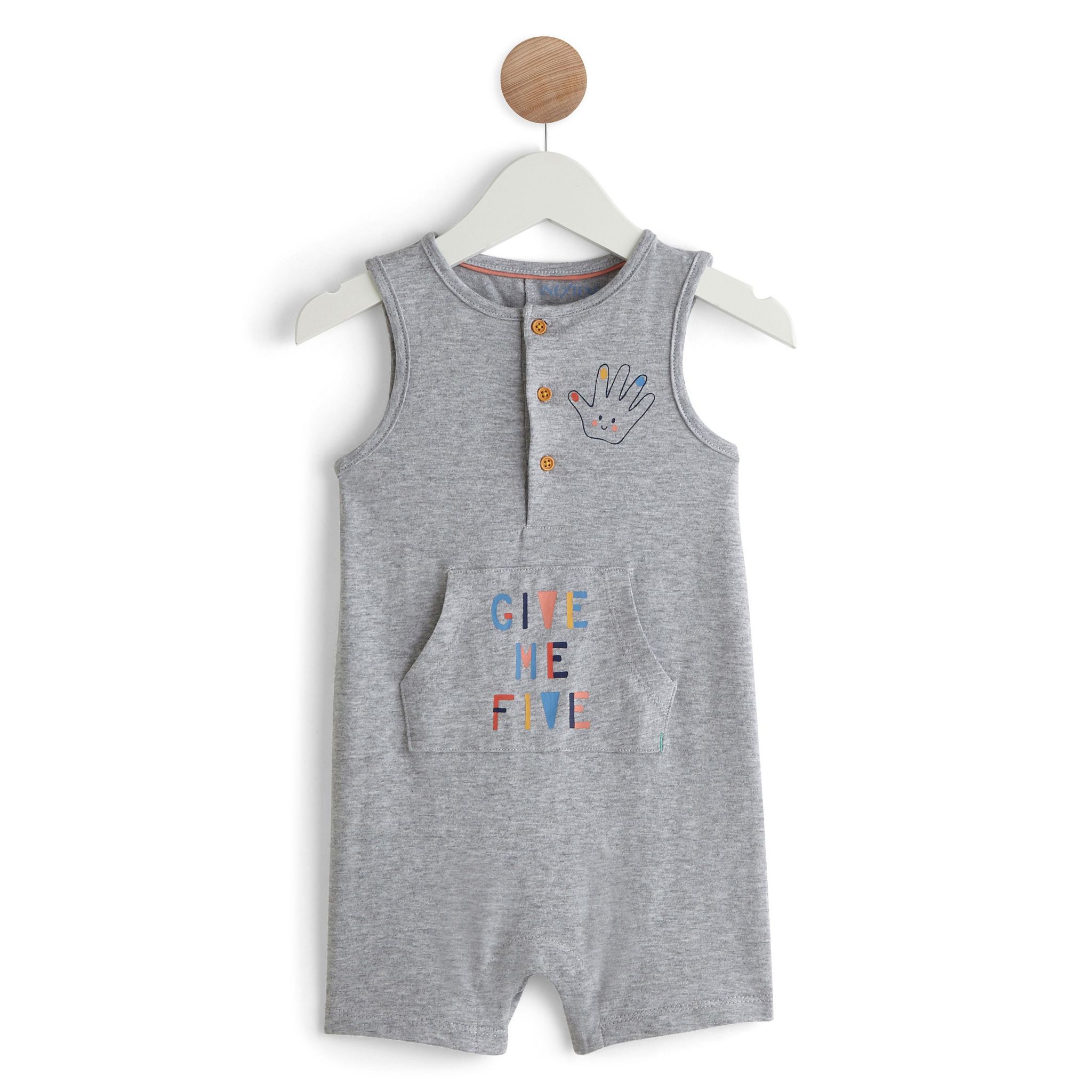 Conçue pour les bébés cool, ce combicourt sans manches est aussi confortable que stylé, avec ses motifs graphiques et colorés sur un beau fond gris chiné. Pratique à enfiler grâce à son encolure boutonnée, ce combicourt possède une poche kangourou trop mignonne sur le devant.