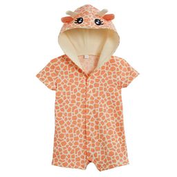 On craque pour cette combinaison bébé girafe ! Combinaison déguisement courte. Légère et agréable à porter. 100% coton. Imprimé fantaisie, animation brodée sur la capuche, avec oreilles et cornes appliquées. Ouverture pratique entièrement pressionnée sur le devant. Manches courtes. Capuche doublée. Cette combinaison déguisement pour bébé est lavable en machine à 40°.