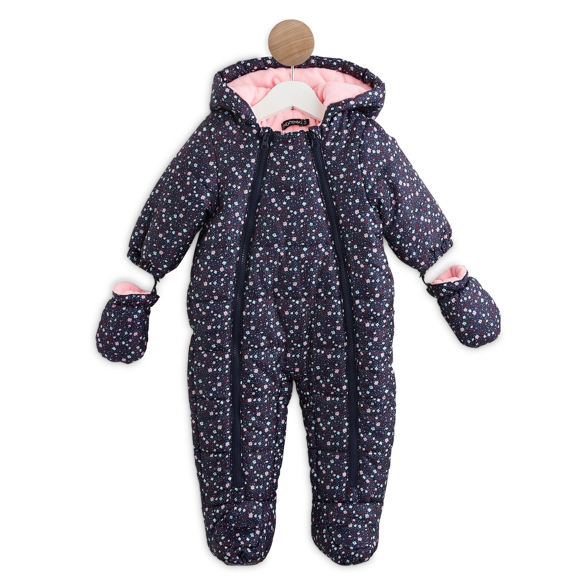 Idéale pour cet hiver et pour la neige, cette combipilote maintiendra votre petite princesse au chaud. Equipée d'une capuche et de moufles, le corps entier de votre bébé sera protégé du vent et du froid. En plus, la combi est super girly avec ses petites fleurs imprimées all over.
