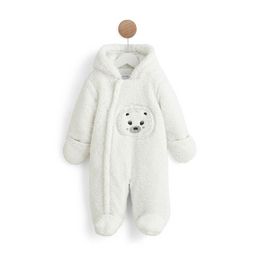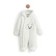 Bébé est dans un cocon chaud et douillet avec cette combi-pilote imitation sherpa unie ! On apprécie son patch animal matelassé devant, sa confection rembourrée et sa doublure en jersey. Elle possède une capuche doublée jersey imprimé avec des petites oreilles et des moufles intégrées aux manches. Elle est fermée par zip asymétrique sur le devant pour faciliter l'habillage.