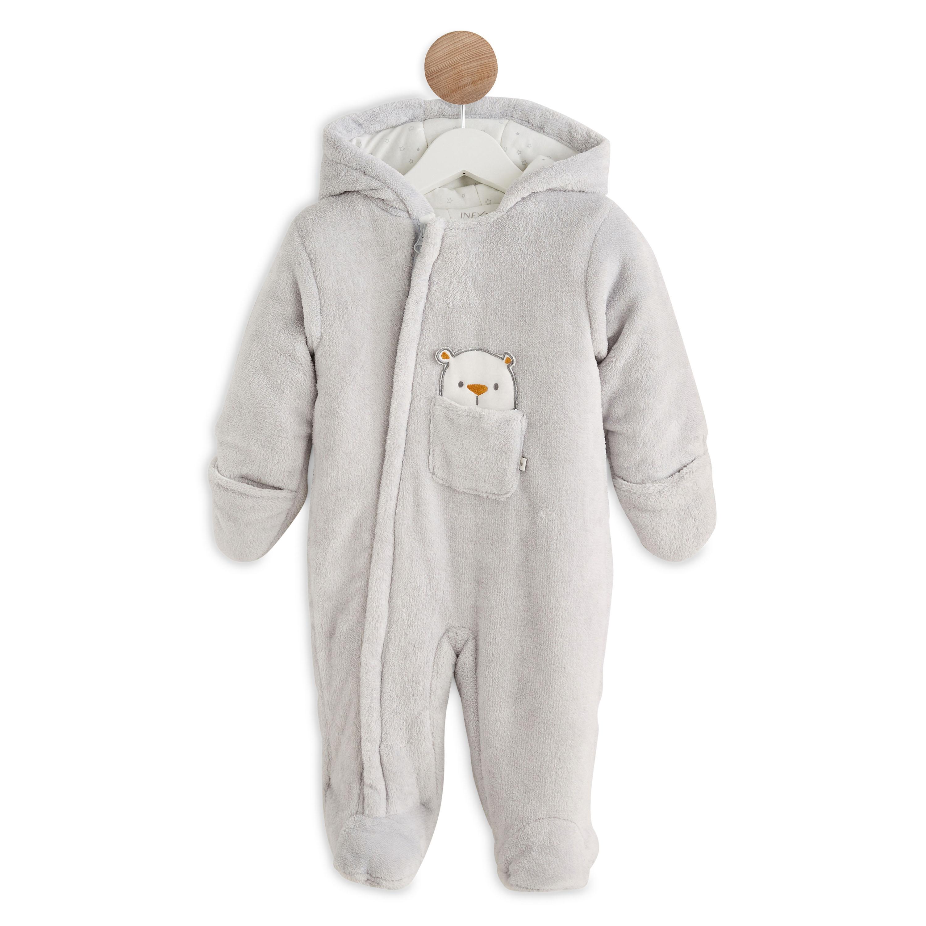 En savoir +Cette jolie combinaison pilote bien chaude est idéale pour affronter l’hiver avec sa matière en sherpa tout doux ! On aime le motif hyper craquant brodé devant au dessus de la poche. La combinaison dispose d’une ouverture zippée devant et des moufles intégrées semi-amovibles. La capuche, doublée en jersey rayé, possède des petites oreilles en relief.