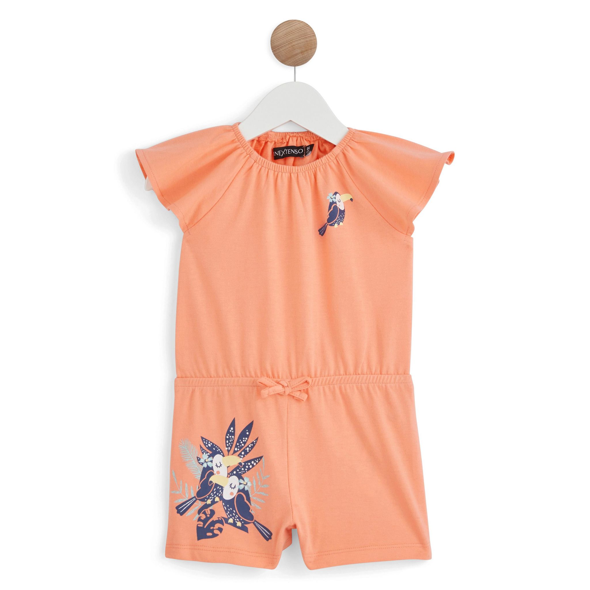 Pour la belle saison, bébé fille va être totalement à son aise avec ce combicourt à manches courtes papillon tout mignon ! On remarque l'imprimé fantaisie : il fait craquer les mamans à coup sûr ! Ce combicourt bébé possède une taille resserrable par lien passant sous coulisse à nouer devant et une