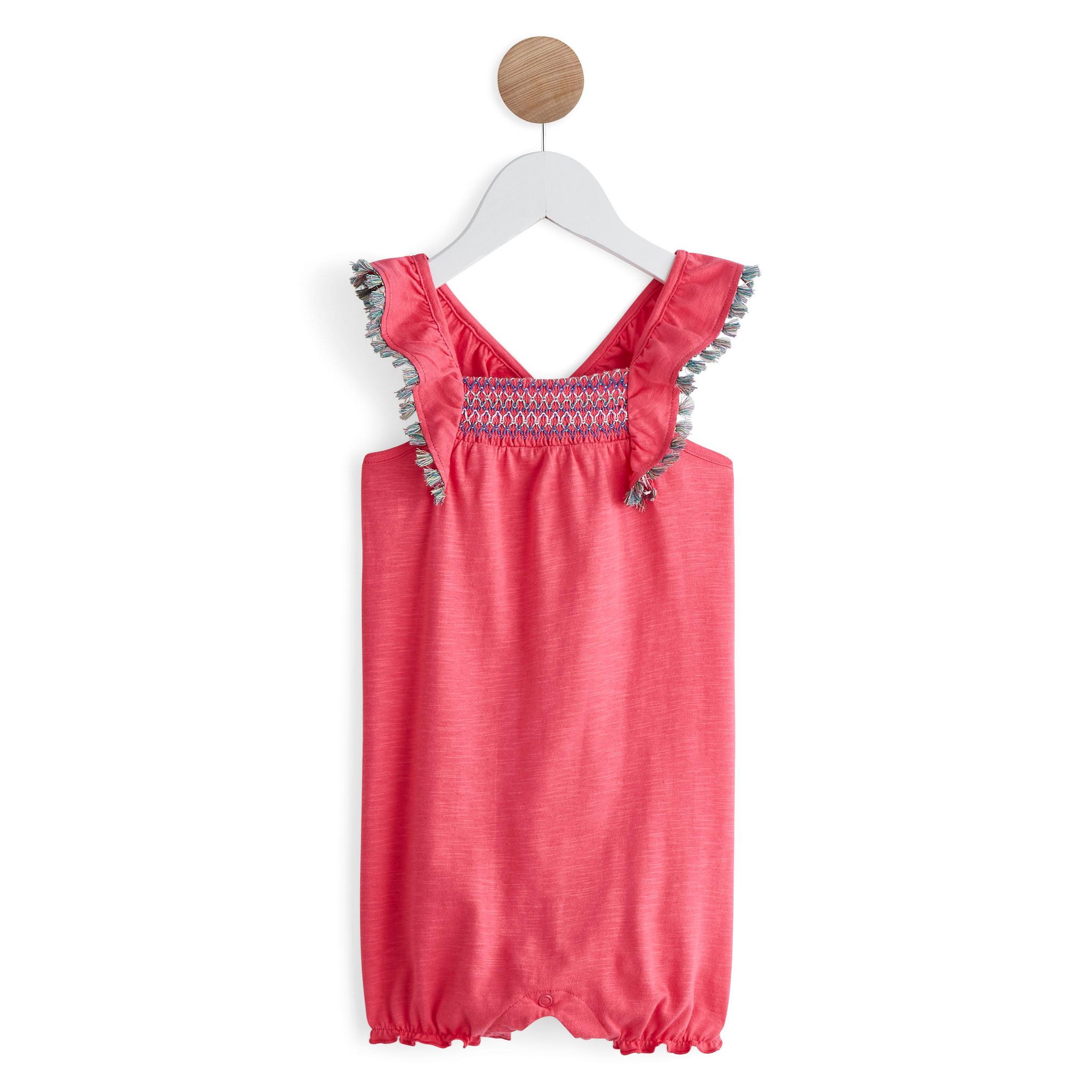 En savoir +C’est l’été avec ce combicourt souple et doux en coton flammé, son jeu de smocks multicolore et ses bretelles volantées ! On craque pour la couleur très franche et la jolie finition pompons à frange très estivale sur les bretelles. Ce combicourt possède une ouverture pressionnée à l’entrejambe.