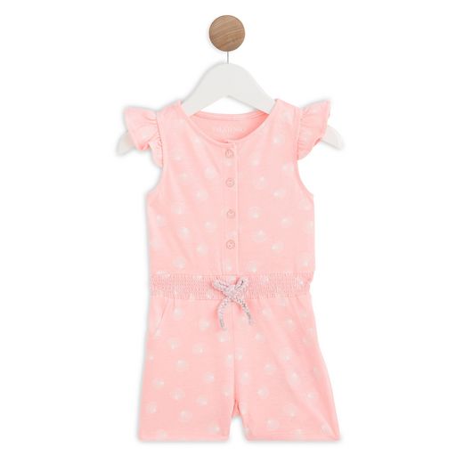 Quelle jolie combinaison pleine de fraîcheur parfaite pour cet été ! Avec son amusant imprimé coquillages et ses emmanchures volantées, votre petite princesse sera carrément à croquer ! L'ouverture boutonnée à l'avant facilite l'habillage.
