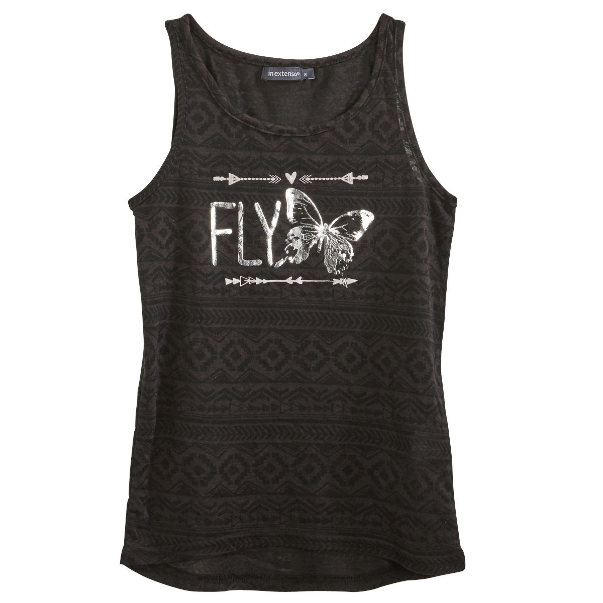 Les atouts de ce débardeur fille ? Un imprimé brillant et un effet légèrement transparent. Matière agréable à porter et très légère. Toucher doux. Ce tee-shirt sans manches fille est lavable en machine à 30°.