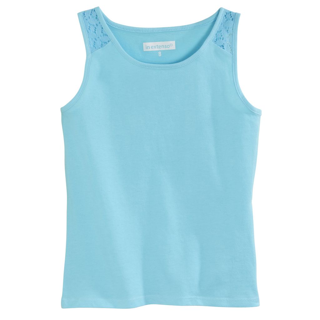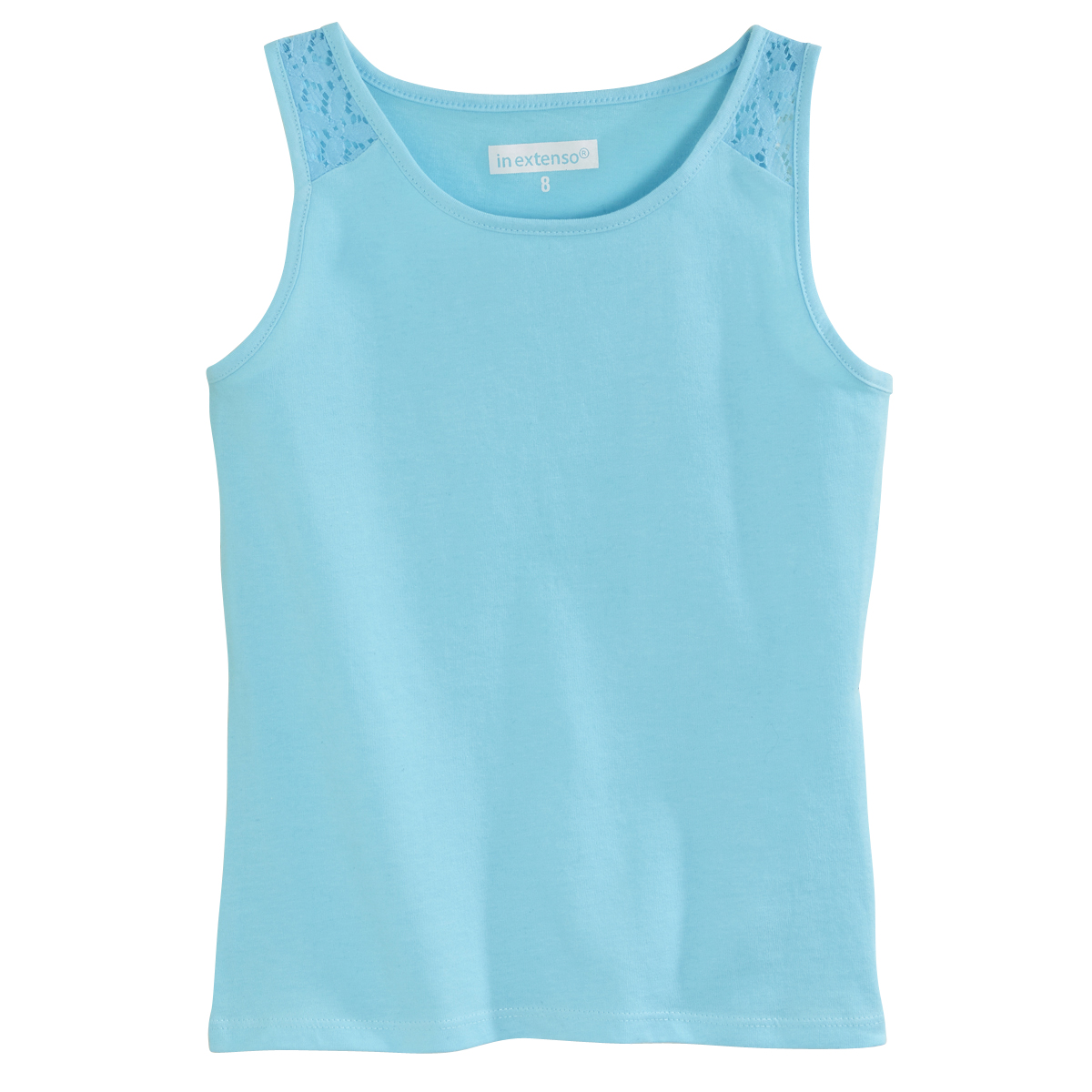 En savoir +Ce débardeur bleu turquoise pour fille est indispensable pour les beaux jours ! On aime : les empiècements effet dentelle sur les épaules. Ce top sans manches dispose d'un col rond. Il n'y a pas d'étiquette dans le cou pour plus de douceur.