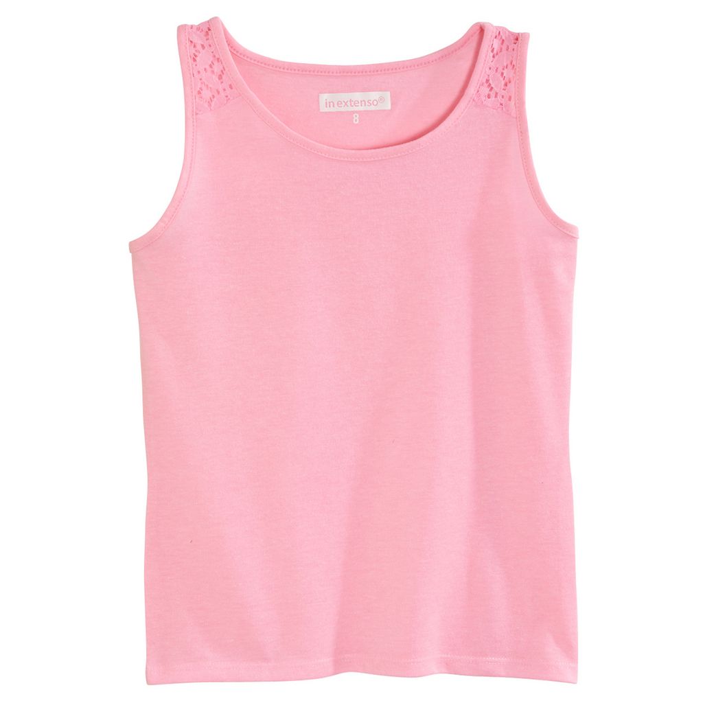 Couleur 100% girly pour ce débardeur fille à porter sans modération durant toute la belle saison ! On aime : les empiècements effet dentelle sur les épaules. Ce top sans manches dispose d'un col rond. Il n'y a pas d'étiquette dans le cou pour plus de douceur.