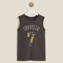 Indispensable pour l'été, le débardeur se décline ici en version graphique avec un motif tribal parfait pour les garçons fans de voyages et d'aventures ! Pratique et facile d'entretien, le style aventurier est accentué par les finitions bords francs à l'encolure et aux emmanchures.