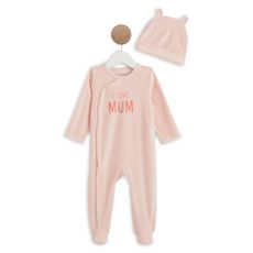 Dors bien + bonnet velours "i love MUM" bébé fille