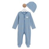 En route pour le pays des rêves avec cet ensemble dors-bien et bonnet en jersey de coton bio tout doux à rayures avec un koala trop mignon imprimé sur la poitrine ! Le dors-bien possède une ouverture intégrale par pressions sur le devant et à l’entrejambe pour un change et un habillage facile.