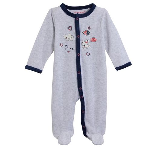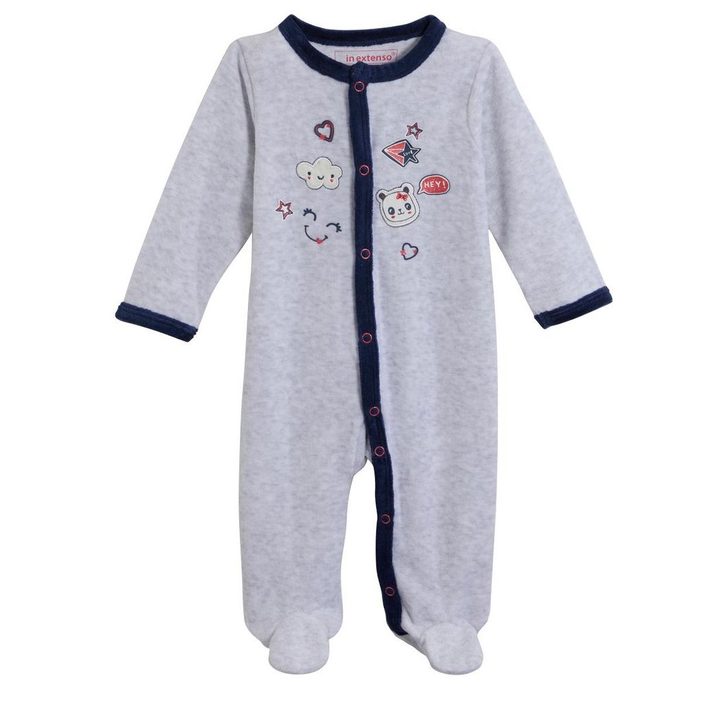 Rien de mieux qu'un pyjama bébé doux et confortable pour des nuits sereines. Le pyjama est réalisé en velours lisse. Toucher doux. Confort assuré. On aime les imprimés, les broderies et les légères paillettes appliqués sur le devant. On note les bords contrastés et l'ouverture totalement pressionnée sur le devant. Ce dors-bien bébé est facile d'entretien.