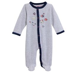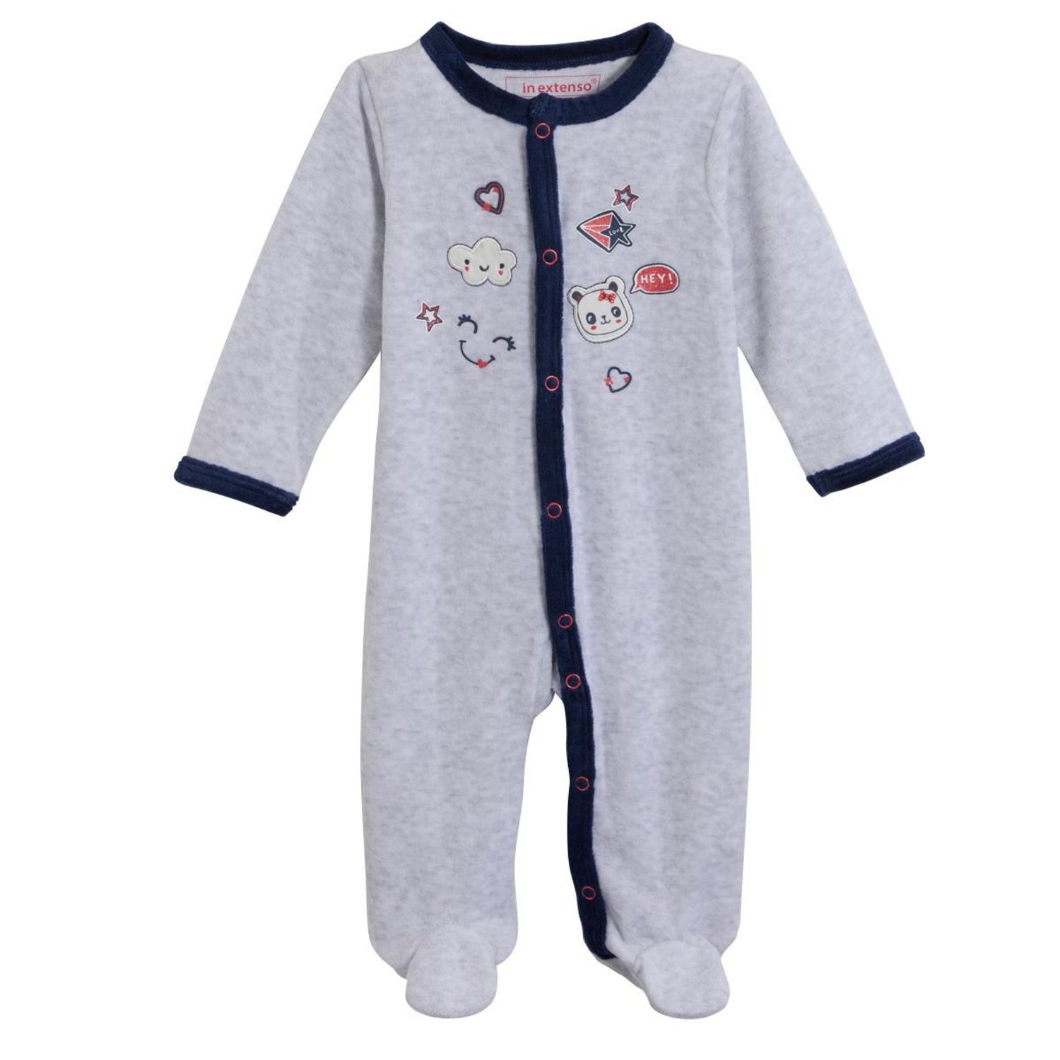 Rien de mieux qu'un pyjama bébé doux et confortable pour des nuits sereines. Le pyjama est réalisé en velours lisse. Toucher doux. Confort assuré. On aime les imprimés, les broderies et les légères paillettes appliqués sur le devant. On note les bords contrastés et l'ouverture totalement pres