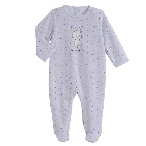 Beaucoup de douceur et de tendresse pour ce pyjama bébé imprimé de "cœurs". Velours lisse hyper doux. Il assure confort et douceur aux bébés pendant la nuit. Décor tendre sur le devant. Ouverture par un pont et un dos pressionnés. Ce dors bien fille est lavable en machine.