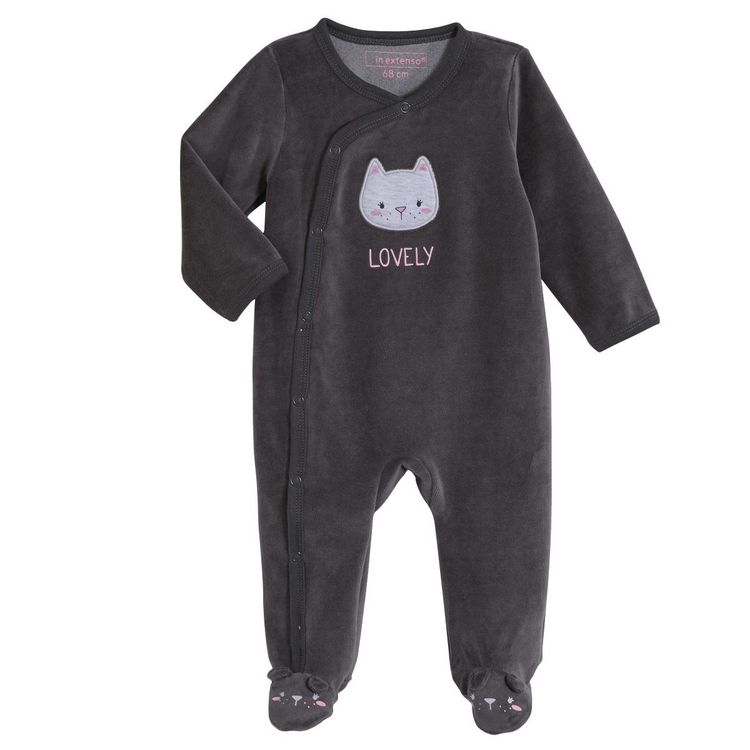 Beaucoup de tendresse pour bébé avec ce dors-bien confectionné en velours ! On aime les motifs fantaisie chats en relief sur le devant et les pieds. Le dors-bien manches longues est muni d'une ouverture entièrement pressionnée sur le devant afin de faciliter l'habillage.