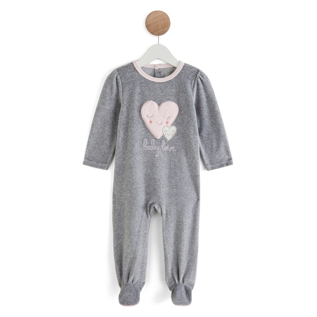 On craque pour ce pyjama en velours bouclette offrira à bébé des nuits pleines de tendresse avec cet adorable pyjama en velours éponge ! On adore son motif cœur en peluche sur le devant. Ouverture pont pressionnée au dos.
