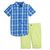 On plonge dans l'été avec cet ensemble chemisette et bermuda garçon. Agréable à porter. 100% coton. Chemise à manches courtes, imprimé carreaux, ouverture boutonnée, base légèrement arrondie. Bermuda : élastique et boutons intérieurs pour une taille bien ajustée, ouverture par bouton et zip, 2 poche