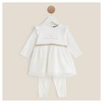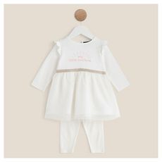 Cette ensemble 3 pièces est une vraie tenue de fêtte pour notre petite princesse ! Un brin féérique, la tunique est rehaussée de tulle et d'un ruban doré à la ceinture. Elle est pressionnée dans le dos pour un enfilage facile. Le legging doux et confortable est parsemé de micro points pailletés, et