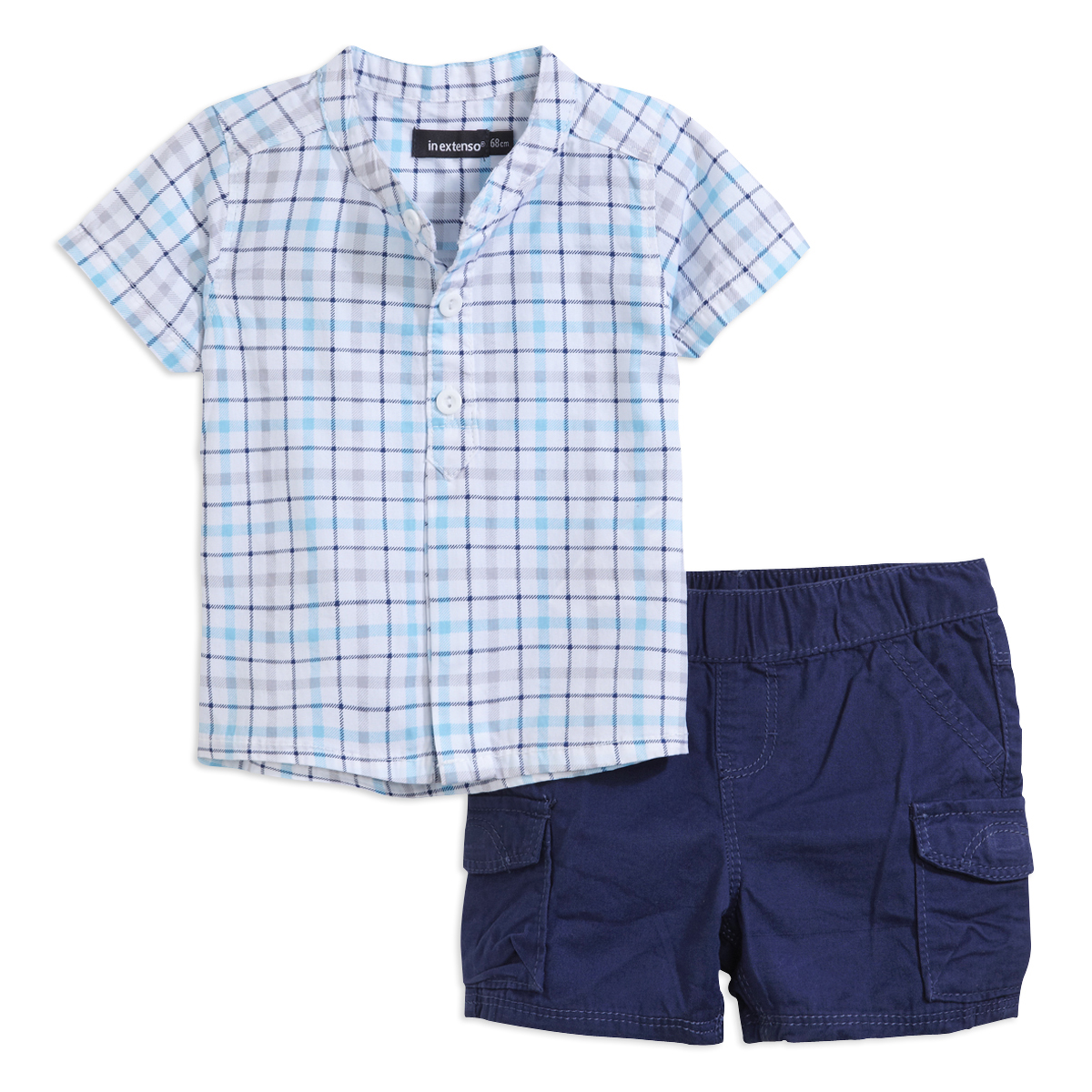 Cet ensemble chemise et bermuda donne un look décontracté à bébé ! Agréable à porter. 100% coton. Chemise à carreaux : col tunisien, manches courtes, ouverture entièrement boutonnée sur le devant. Bermuda : taille élastiquée, 2 poches, jeu de surpiqûres. Cet ensemble chemise et short bébé garço