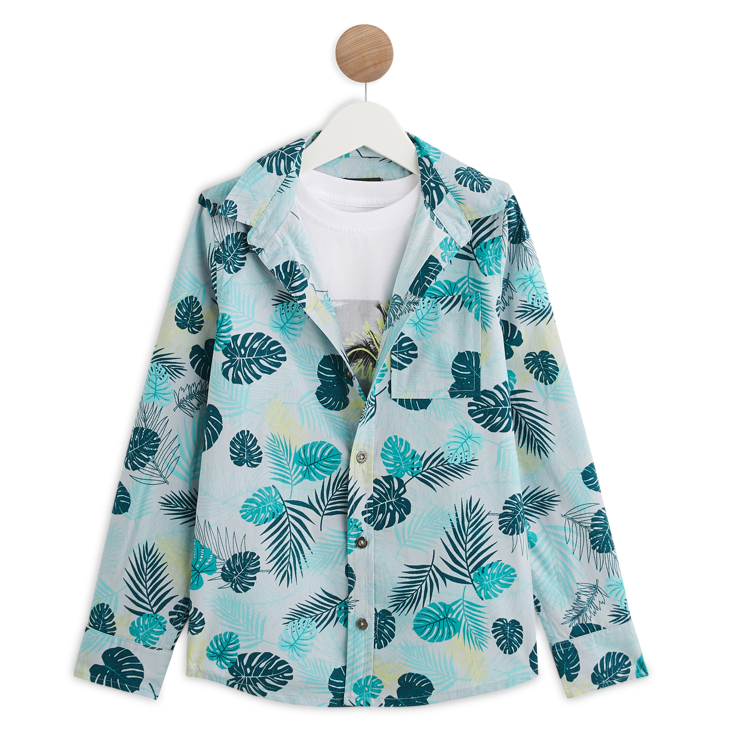 En savoir +Cet ensemble apporte une touche de fraîcheur à la tenue de votre enfant pour cet été ! La chemise à manches longues, imprimée all over avec des feuilles exotiques, est douce et confortable. Le tee shirt, avec son imprimé Cool Vibes sur le devant, est agréable à porter en toutes circonstances.