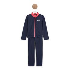 Les filles craquent pour cet ensemble sport confectionné en polytricot ultra confortable ! On adore : le col montant contrasté, le message imprimé devant et les poches dans les coutures sur le gilet zippé. Le pantalon jogging possède une taille élastiquée pour un confort au top.