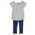 Les filles sont impatientes de porter cet ensemble blouse et legging court. Il est agréable à porter. Haut : blouse légère imprimée, manches courtes, col rond animé de smocks. Bas : legging uni, confortable, taille élastiquée.