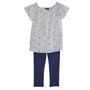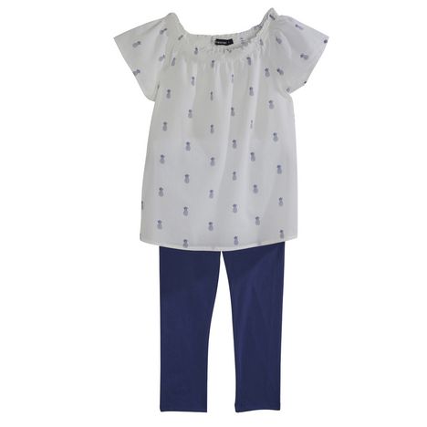 Les filles sont impatientes de porter cet ensemble blouse et legging court. Il est agréable à porter. Haut : blouse légère imprimée, manches courtes, col rond animé de smocks. Bas : legging uni, confortable, taille élastiquée.