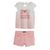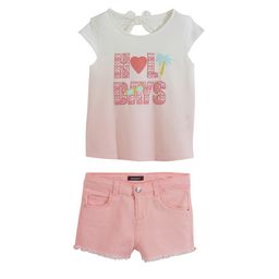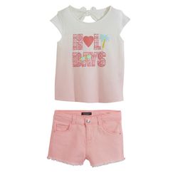 Girly et pétillant, cet ensemble tee-shirt et short comblera les filles ! On aime : les coloris girly et les détails féminins. Le tee-shirt est réalisé en coton, il possède un imprimé fantaisie et un dégradé de couleurs, on note le col rond, les manches courtes et l'ouverture girly en haut du dos