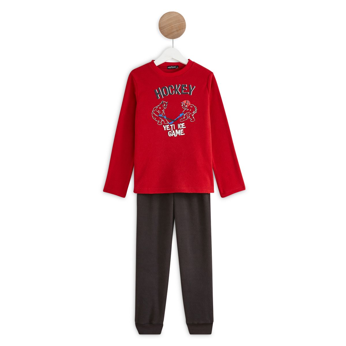 En savoir +Cet ensemble pyjama en polaire est carrément trop stylé avec ses deux yétis qui font du hockey imprimé sur le devant ! L'ensemble bien chaud se compose d’un t-shirt à col rond et manches longues, et d’un pantalon élastiqué à la taille pour plus de confort. L’ensemble comporte le label OEKO-TEX qui garantit l'absence de substances indésirables pour la santé et la peau.