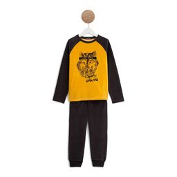Les garçons font de beaux rêves avec ce pyjama 2 pièces tout doux ! Ils aiment : l’imprimé fantaisie sur le T-shirt bicolore à manches longues. Le pantalon uni possède une taille élastiquée pour un confort au top. Ce pyjama garçon est réalisé dans une matière douce et confortable.